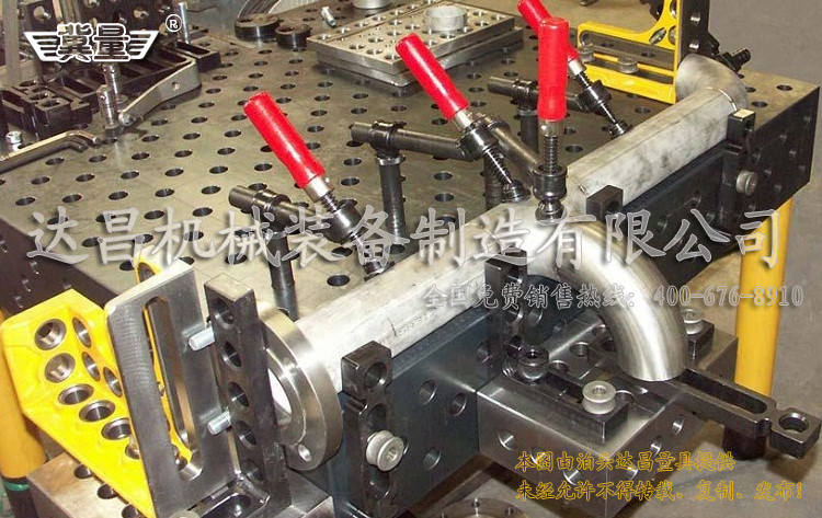 三維柔性多功能焊接平臺廠家在哪?河北找達昌 我公司生產的三維柔性焊接平臺質量壹流,公司設備先進,全部采用進口數控龍門加工中心加工,技術力量雄厚在生產各種鑄造量具產品百余種,擁有配套齊全的鑄造和機械加工設備。主要生產加工大中型高強度、鑄鋼、球墨鑄鐵三維柔性焊接平臺,組合夾具機器人工裝自動化設備等。 三維柔性焊接平臺功能柔性化相對傳統焊接工裝而言,工裝只能針對一個工件或一個工序進行使用,柔性焊接工裝的通用性就顯得非常強大。三維柔性焊接工作臺的五個工作面可以根據需要任意擴展延伸,在工作臺面范圍內的三維尺寸可以任意方便的調整定位裝夾;附件的標準孔位與可調槽孔的靈活組合,使得工件的X、Y、Z坐標值得到任意調整;通過平臺與平臺、平臺與附件、附件與附件這些模塊化系統在安裝、調整和裝夾工件中體現了它通用柔性功能。 因為有上述功能整套裝備可根據產品的變化而變化,一套夾具就可完成幾個產品或幾十個產品的需求,從而大大的加快了產品的研發、試制的進程,節省大量的人力、物力和財力。拼裝方式多樣,用戶只要充分發揮想象力,幾乎可達到任何專用夾具同樣的定位和夾緊功能。拼裝快速,裝拆方便;工作臺面可以根據工件形狀、大小進行拼裝組合。用戶可根據需要快速拼接出不同要求的工裝,就像兒童玩拼裝式玩具一樣;讓工作變得輕松趣味性!臺面上的刻度和模塊尺寸的設計,使操作工人不用量具就可以根據工件尺寸迅速搭出所需要的工裝。