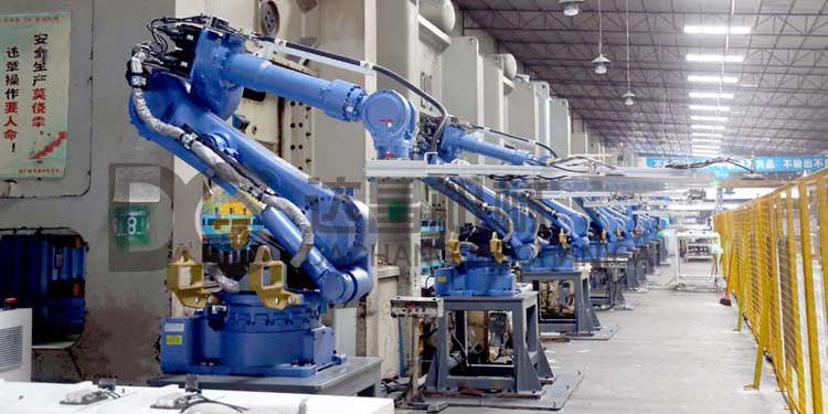 沖壓機器人主要由執行機構、驅動機構和控制系統三大部分組成。手部是用來抓持工件(或工具)的部件,根據被抓持物件的形狀、尺寸、重量、材料和作業要求而有多種結構形式,如夾持型、托持型和吸附型等。運動機構,使手部完成各種轉動(擺動)、移動或復合運動來實現規定的動作,改變被抓持物件的位置和姿勢??刂葡到y是通過對沖壓機器人每個自由度的電機的控制,來完成特定動作。同時接收傳感器反饋的信息,形成穩定的閉環控制,控制系統的核心通常是由單片機或dsp等微控制芯片構成,通過對其編程實現所要功能。