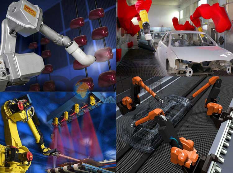 噴涂機(jī)器人是可進(jìn)行自動(dòng)噴漆或噴涂其他涂料的工業(yè)機(jī)器人,主要由機(jī)器人本體、計(jì)算機(jī)和相應(yīng)的控制系統(tǒng)組成,液壓驅(qū)動(dòng)的噴漆機(jī)器人還包括液壓油源,如油泵、油箱和電機(jī)等。多采用5或6自由度關(guān)節(jié)式結(jié)構(gòu),手臂有較大的運(yùn)動(dòng)空間,并可做復(fù)雜的軌跡運(yùn)動(dòng),其腕部一般有2~3個(gè)自由度,可靈活運(yùn)動(dòng)。